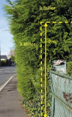 Les riverains doivent obligatoirement élaguer les arbres, arbustes ou haies en bordure des voies publiques ou privées, de manière à ce qu'ils ne gênent pas le passage des piétons, ne cachent pas les feux de signalisation et les panneaux (y compris la visibilité en intersection de voirie).