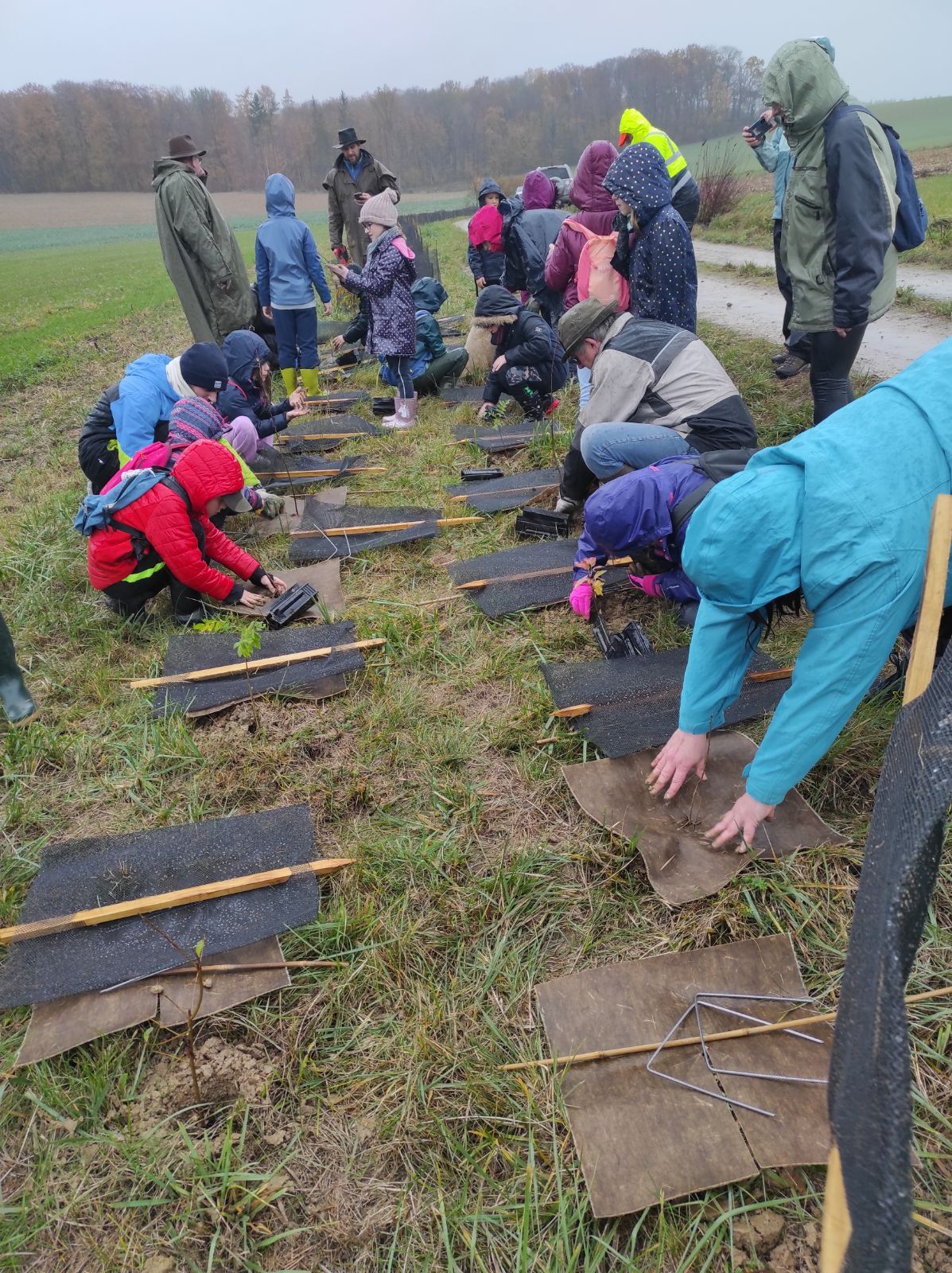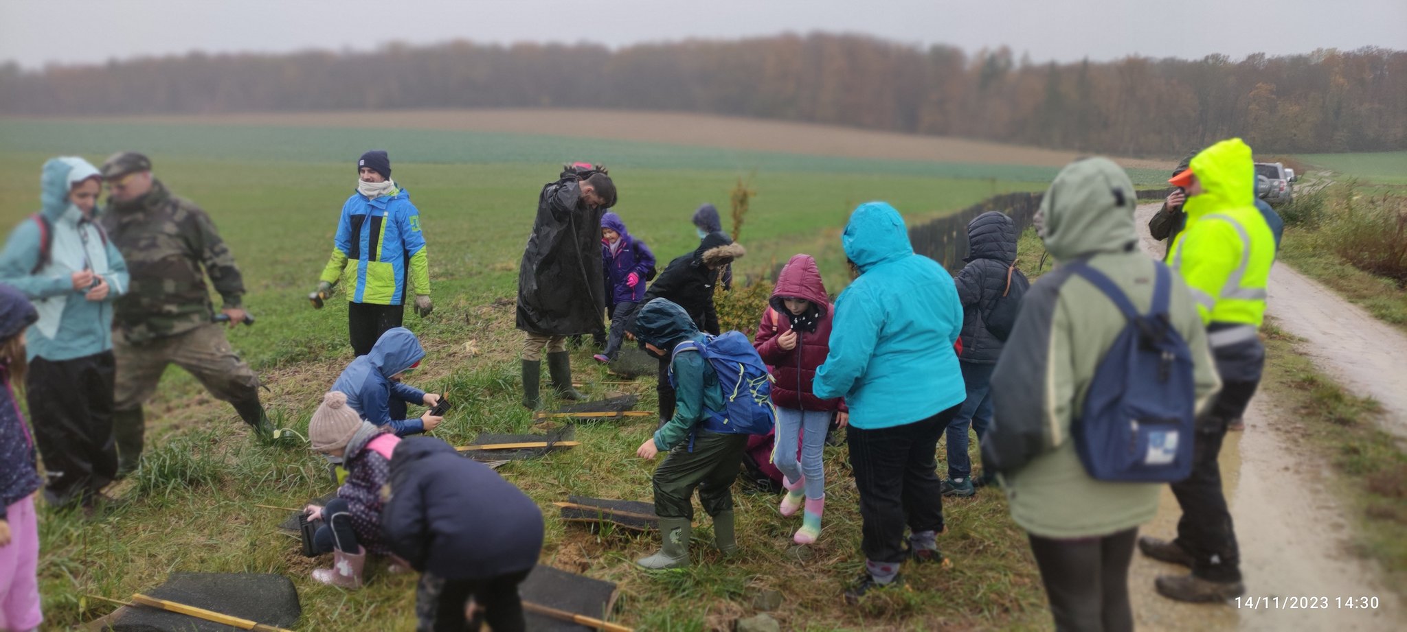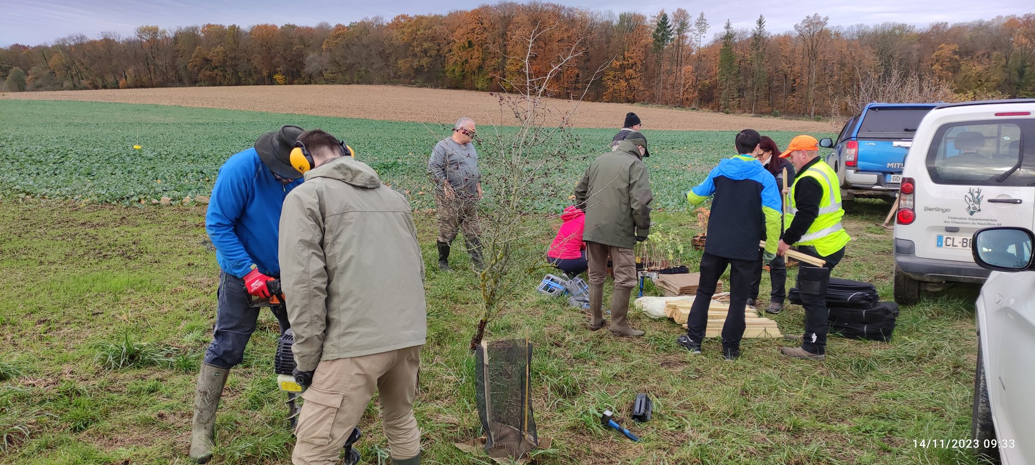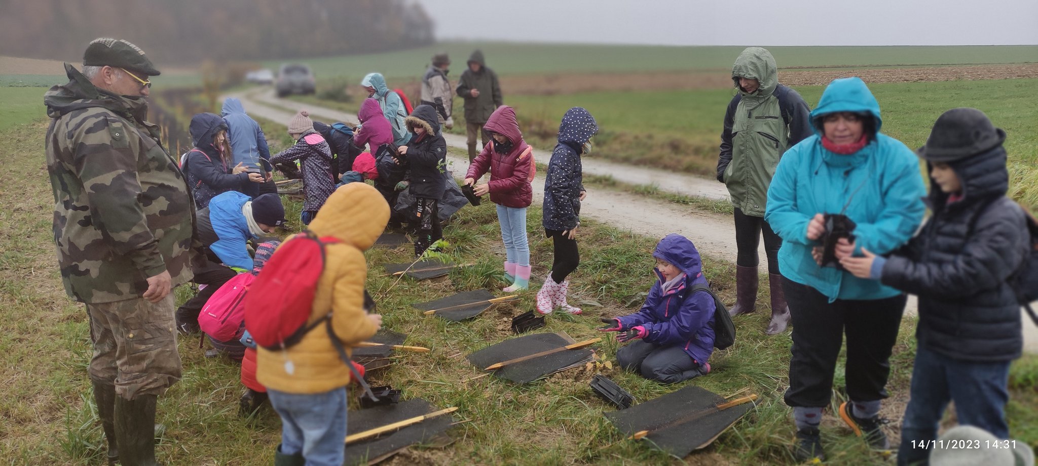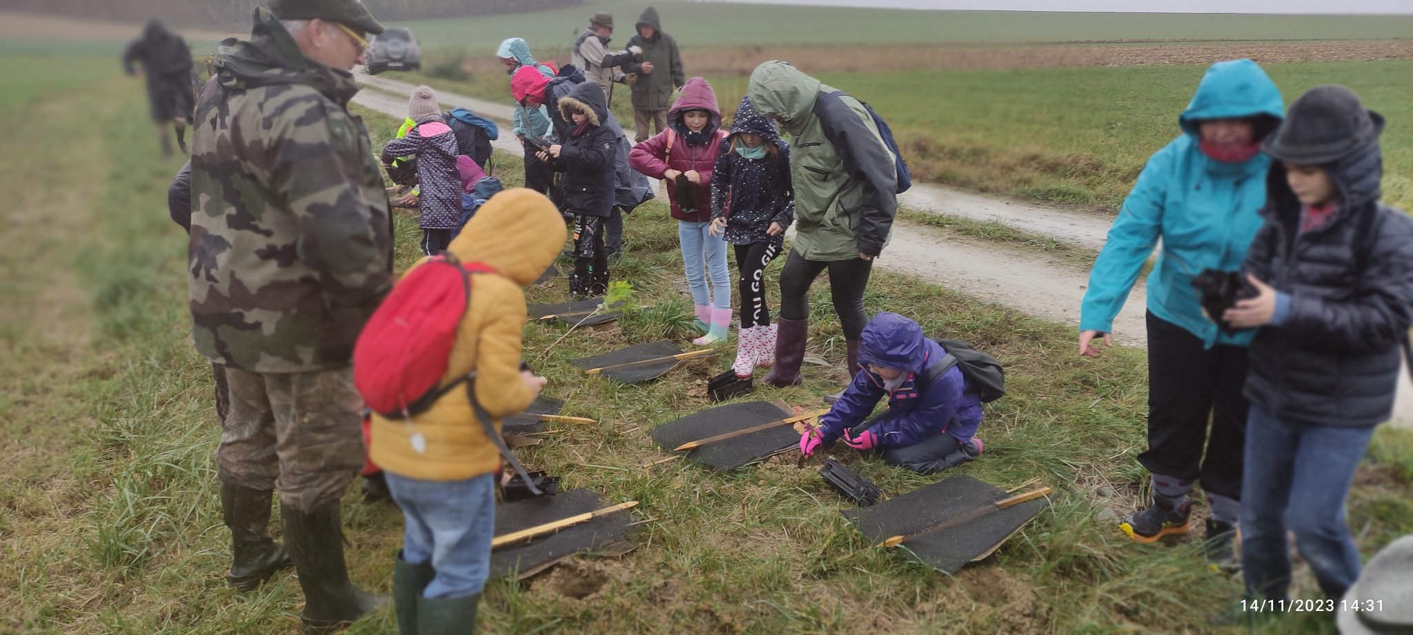 A la sainte Catherine tout bois prend racine, et à la Sainte Sidonie aussi. A l'initiative du maire et des adjoints, et le concours de la fédération départementale des chasseurs du Haut-Rhin qui offre les plants, une pluie fine et pénétrante n'aura pas empêché les chasseurs locaux, le 1er adjoint Nicolas Kress et la conseillère Christiane Cravé, les classes de CM1 et CE2 d'Aline, d'assurer la plantation de plus de 250 de moyennes et hautes tiges le long d'un chemin sur un territoire de la commune. Un deuxième session aura bientôt lieu pour finaliser ce premier effort de renaturation de nos plaines, avec les classes de CP et CE1 de Sophie Gerriet cette fois.