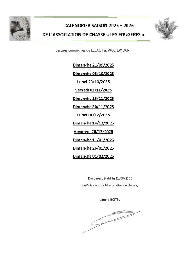Par convention de gré à gré, la chasse communale a été relouée aux chasseurs sortants pour 9 ans à partir de 2024.