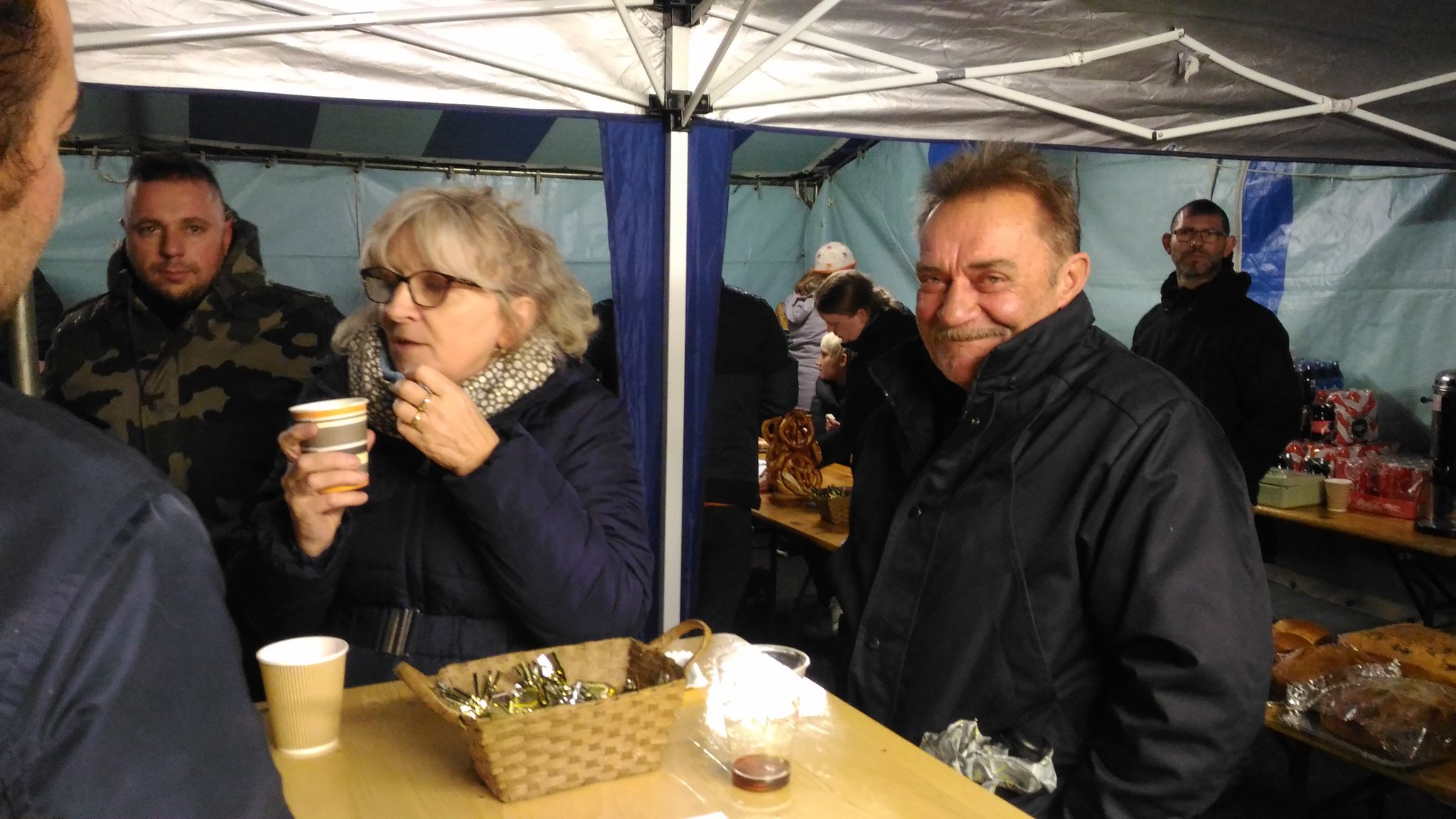 Nous avons eu le plaisir de pouvoir saluer le commandant Serge Renger de la 7ème compagnie (non ce n'est pas une blague) des sapeurs-pompiers du secteur d'Altkirch, chef de groupe de la zone de Dannemarie, les officiers sapeurs-pompiers honoraires, Dominique Landewerlin et Maurice Cybinski ainsi le maire de Dannemarie Paul Mumbach venu en voisin, que nous remercions pour le prêt des chalets du marché de noël.