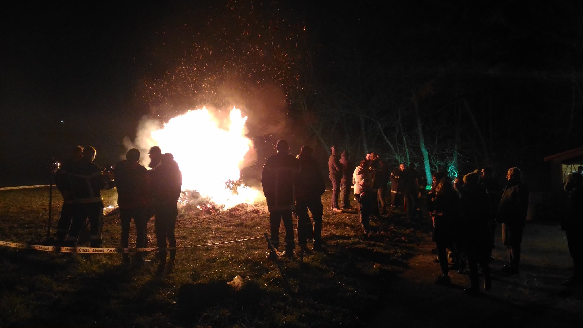 Excellente ambiance autour de la crémation des sapins organisée par l'amicale des sapeurs pompiers de Dannemarie en présence de nombreux Wolfersdorfois(es).