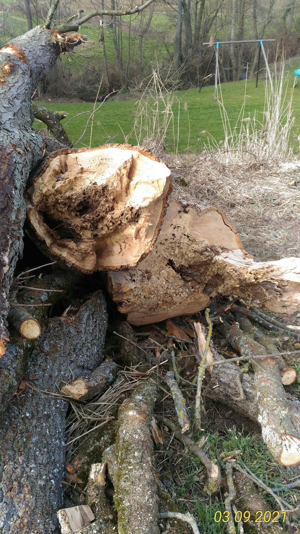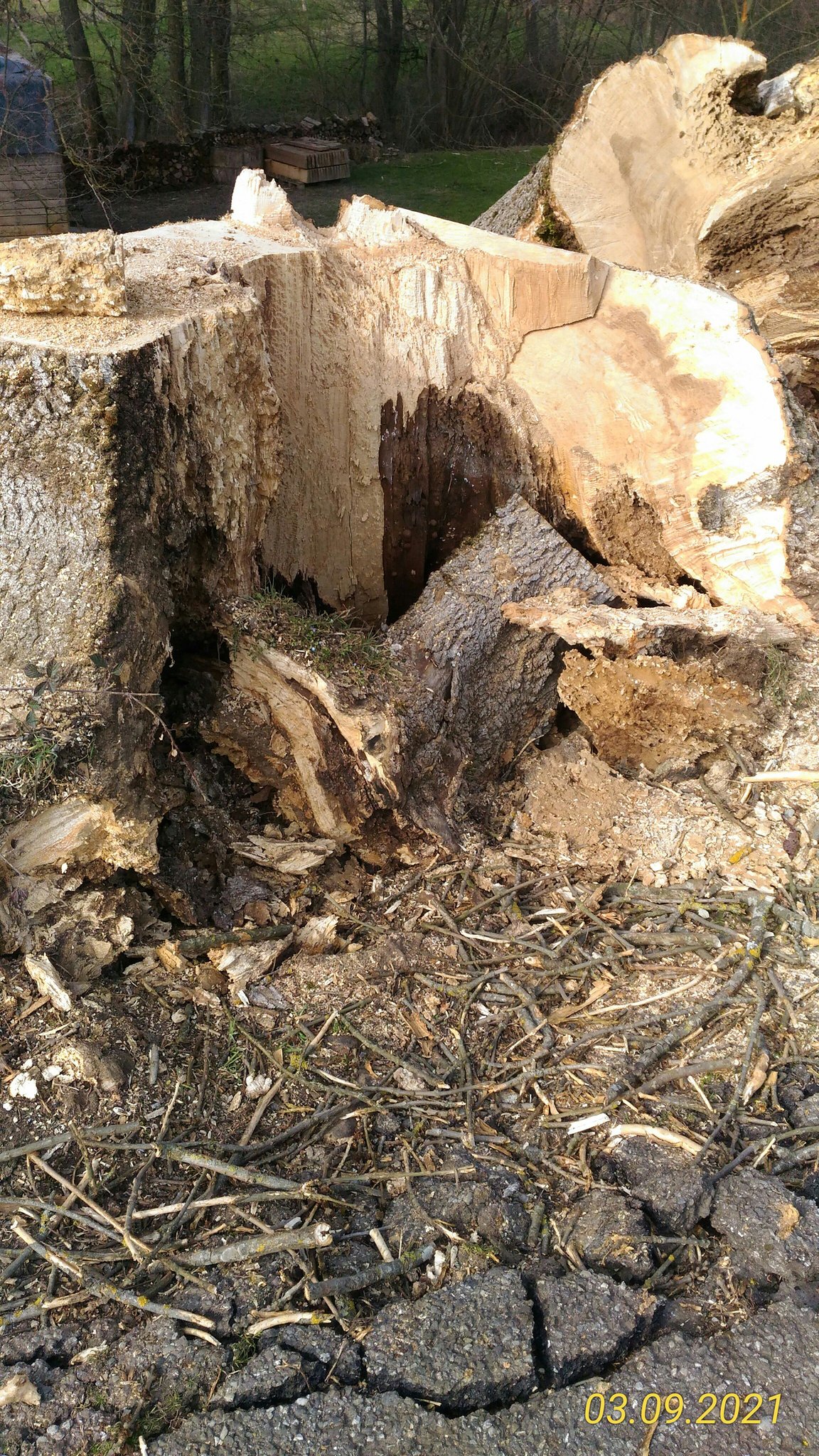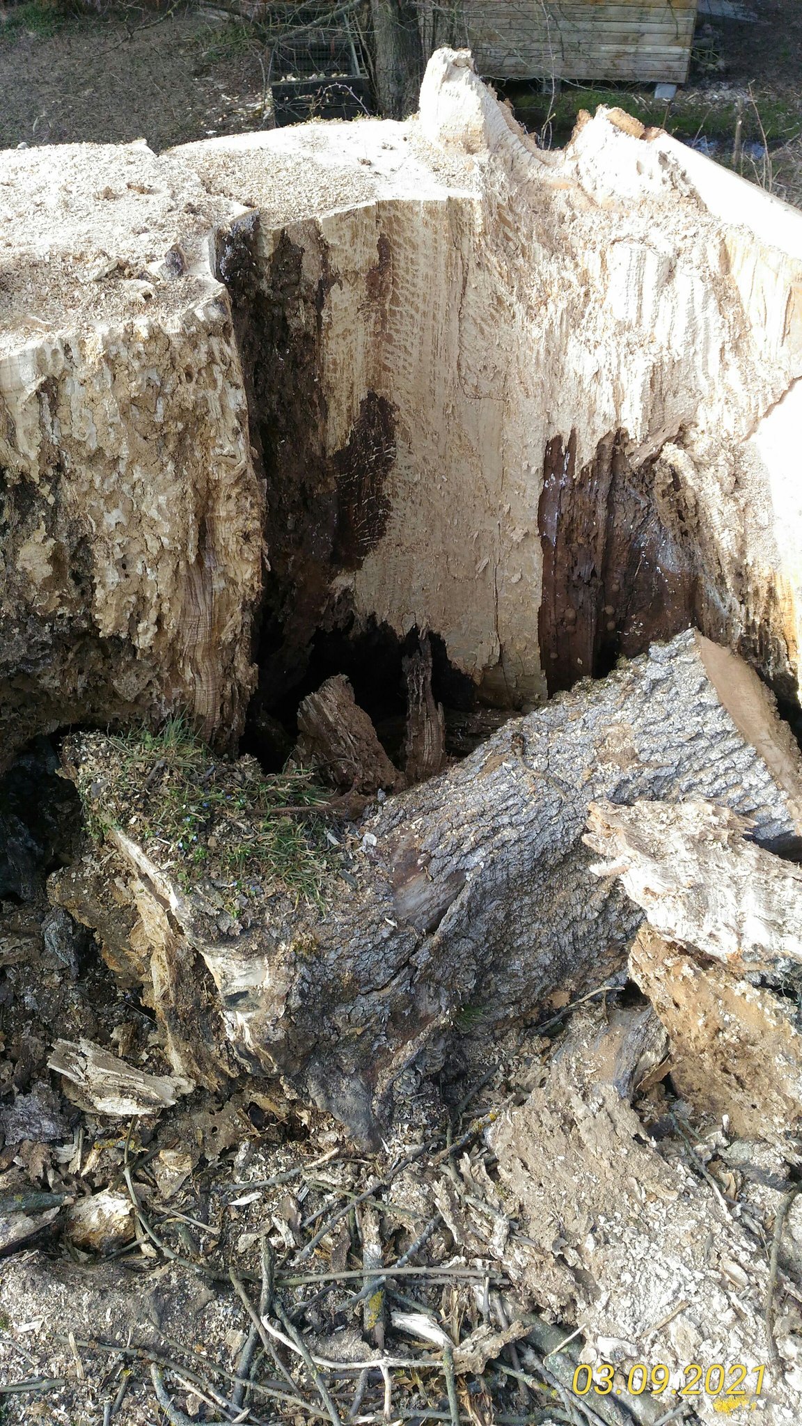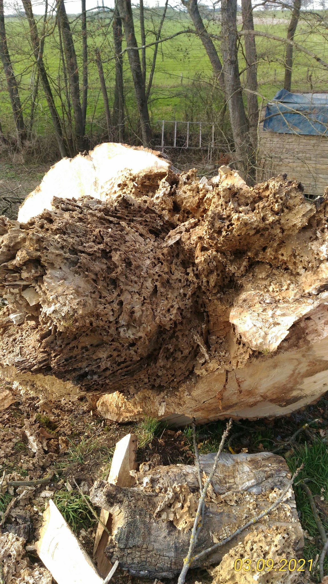 Atteint par la chalarose, ce champignon très virulent pénètre dans le frêne par les feuilles et le collet de l'arbre. La chalarose atteint aussi bien les jeunes sujets que les arbres adultes, il s'attaque aux frênes a été détecté sur toutes les parties possibles de l'arbre malade (collet, houppier, racines, pousses, gourmands) Les photos témoignent de l'état des racines et du cœur.