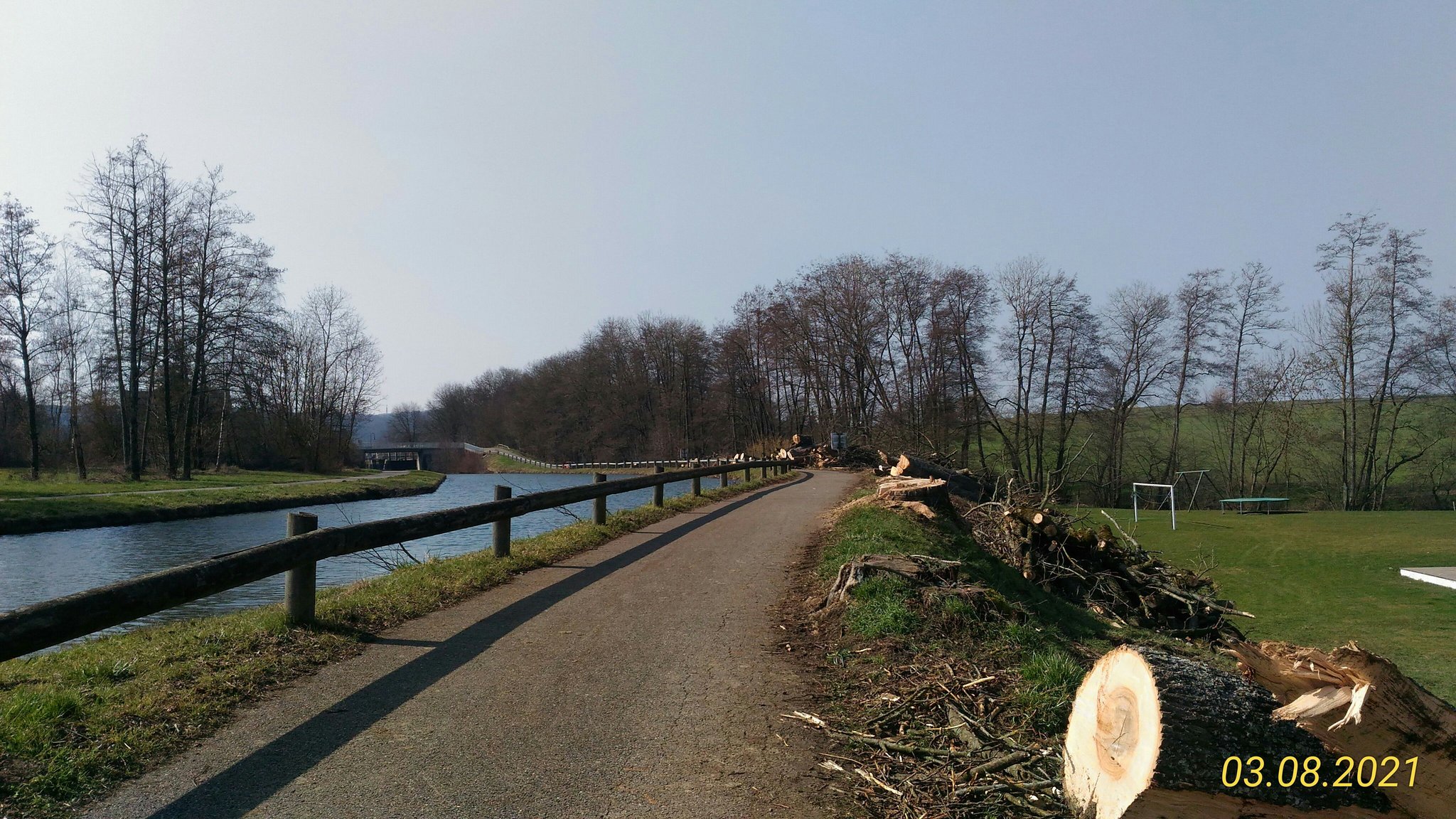 Désormais les proches habitations sont sécurisées, mais ce charmant chemin de halage est devenu une triste voie qui porte des cicatrices que nous envisageons de résorber par le retalutage des berges et la plantation d'une haie sur toute la longueur, mais pour cela il nous faut l'accord de VNF, des négociations sont en cours.